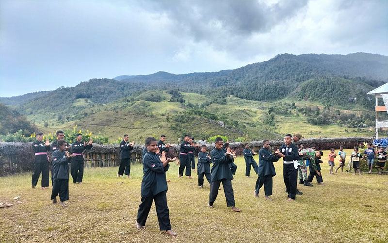 Lanny Jaya – Sebagai bentuk perwujudan pembinaan ketahanan wilayah Satgas Kodim Yonif MR 412 Kostrad mengajak para pemuda yang ada di pegunungan tengah Kab. Lanny Jaya Papua untuk mengenal dan mempelajari serta menumbuhkan rasa cinta terhadap warisan budaya asli Indonesia yakni seni bela diri Pencak Silat.