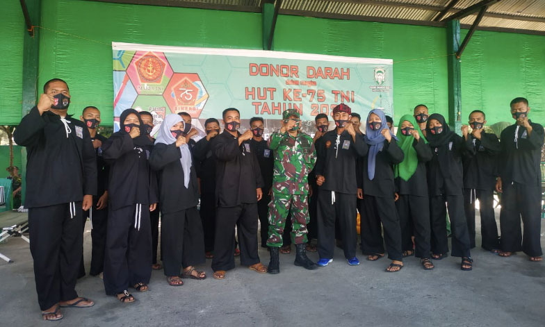 Para pendekar Pencak Silat Persaudaraan Setia Hati Terate (PSHT) Cabang Nagan Raya turun bersama membantu sesama dengan mengikuti donor darah pada Selasa 22 September 2020.